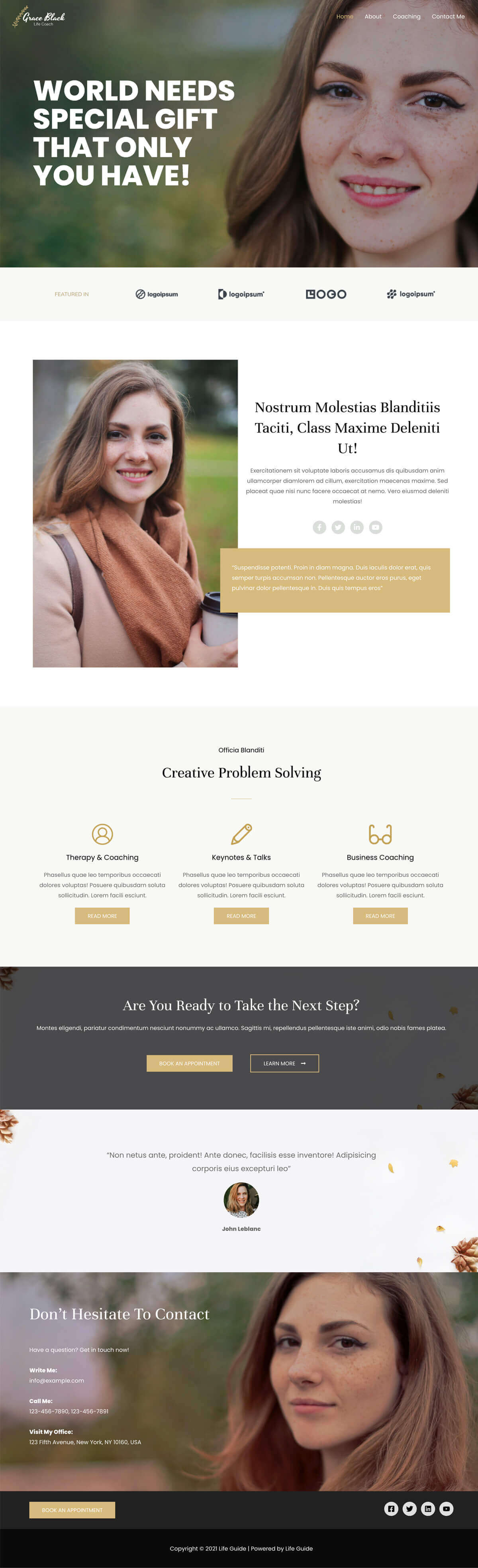 - Well-designed template for life coaches, counsellors and professionals