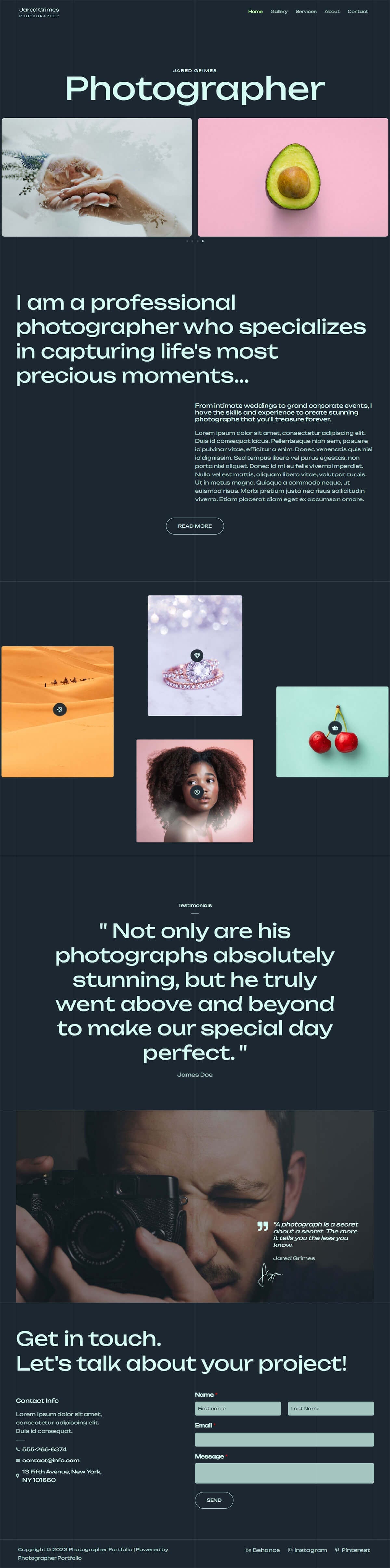 Key features of the Photographer Portfolio template