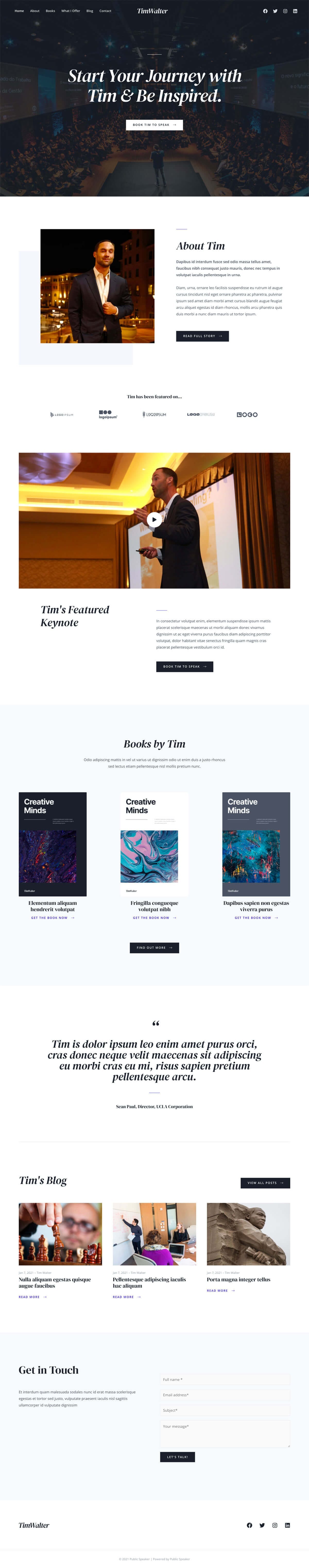 - Package includes dedicated pages about the speaker, services offered, contact and even to sell your publications online