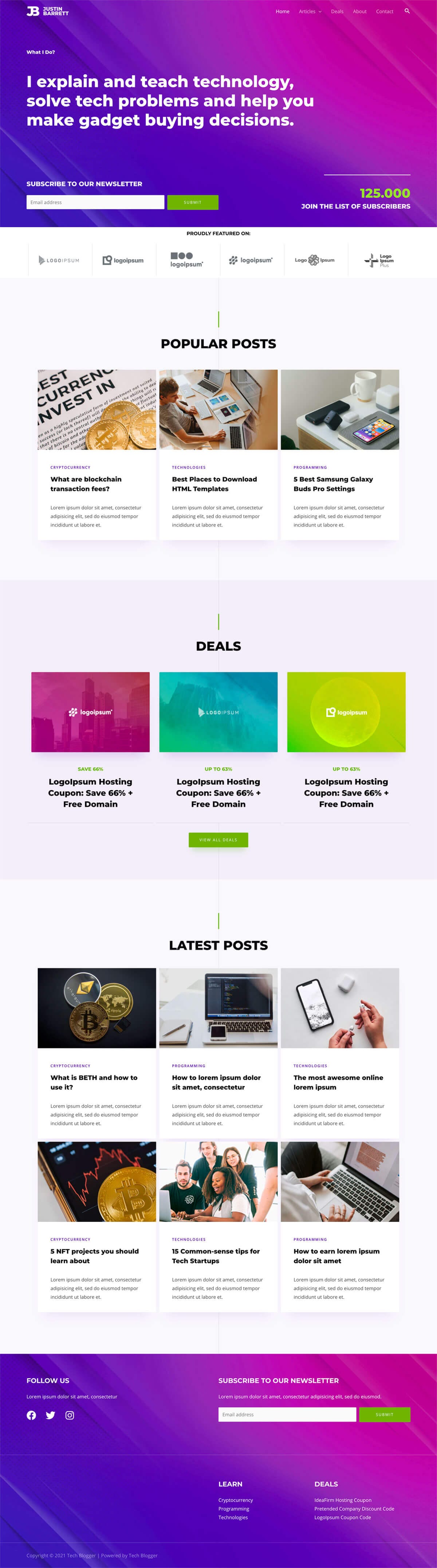 The template is designed to help you quickly start your own technology blog. You don’t have to be a tech expert or a web developer to create your own website.
