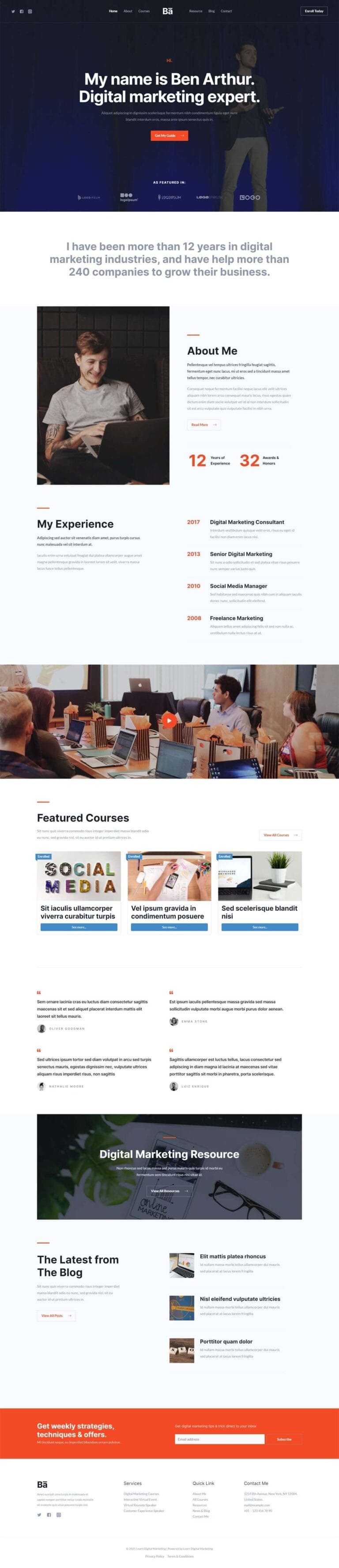 An ideal website template to offer courses and resources on digital marketing...