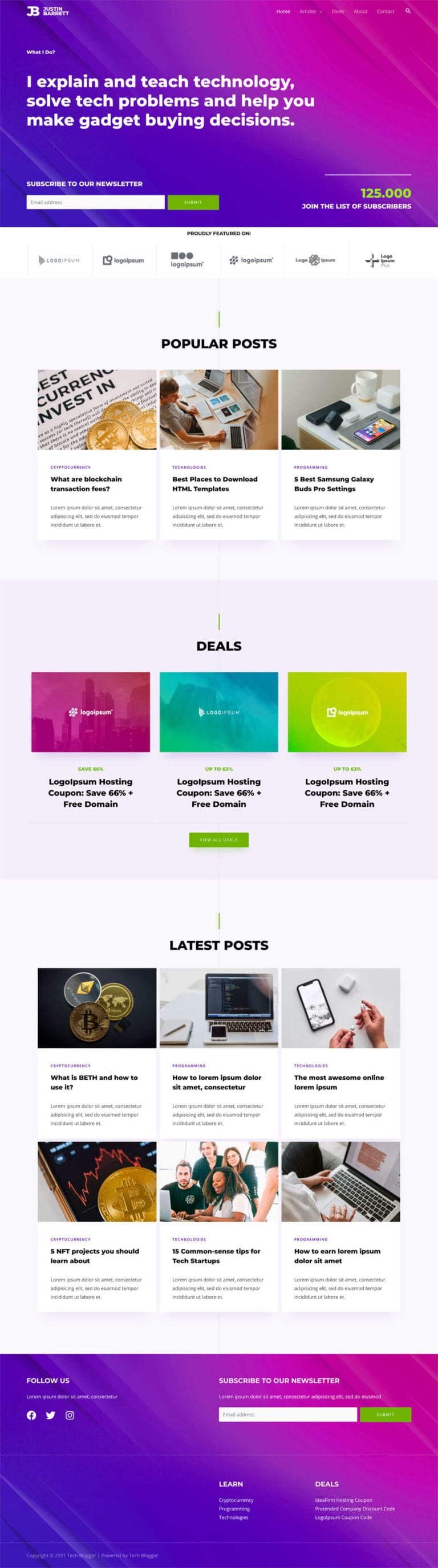 A modern website template that lets you showcase the latest technology blog posts...