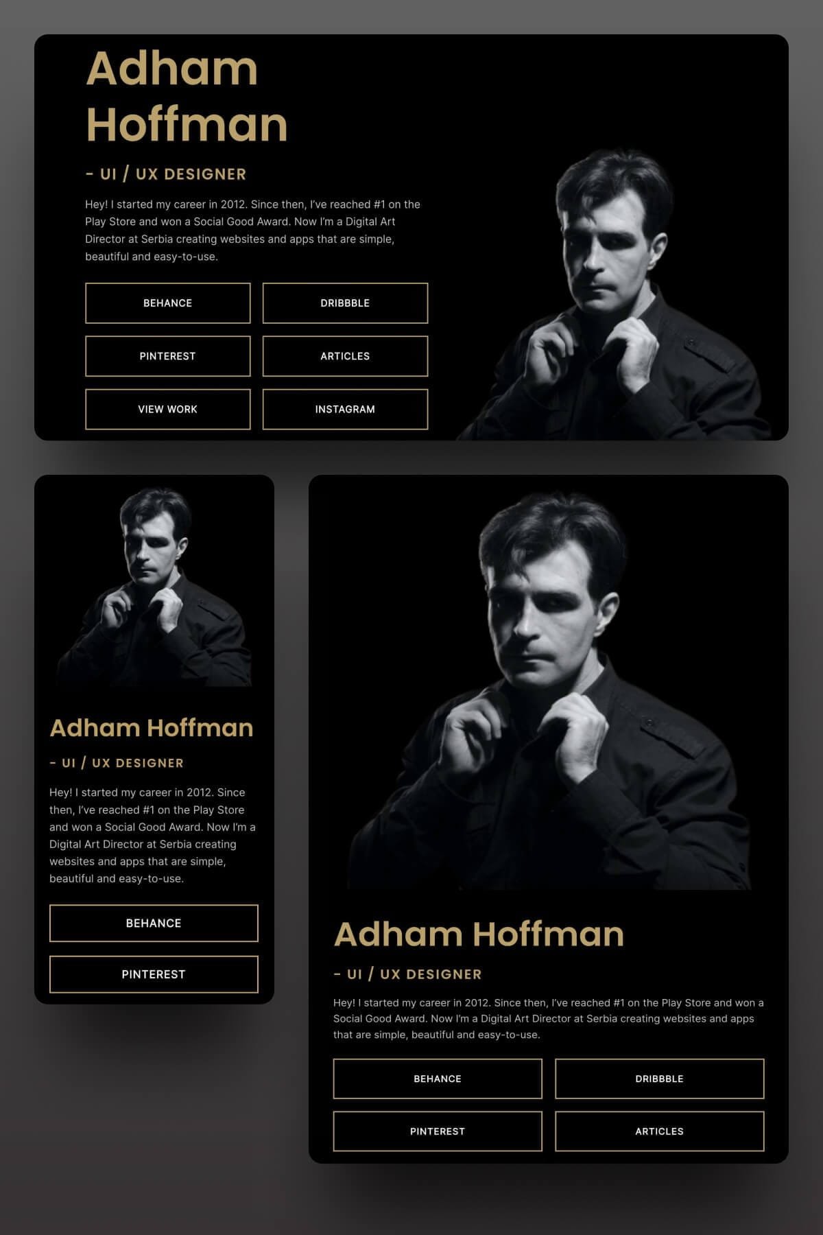 The UI/X Designer template is a landing page with all your essential links front and center. It’s ideal for designers and developers who want to place everything in front of the visitor all at once.