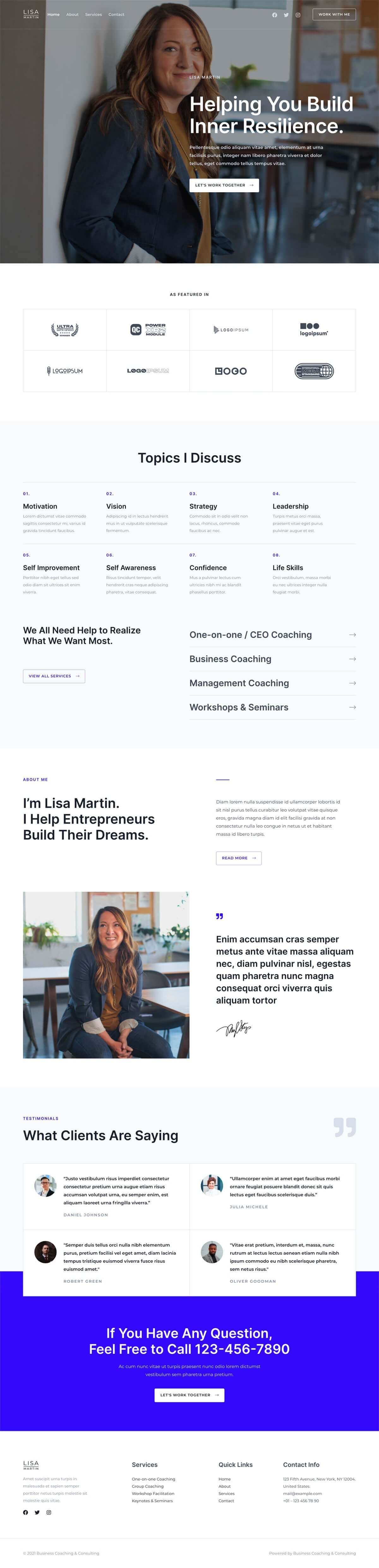 - Clean and professional-looking website template, perfect for a coaching and consulting business
