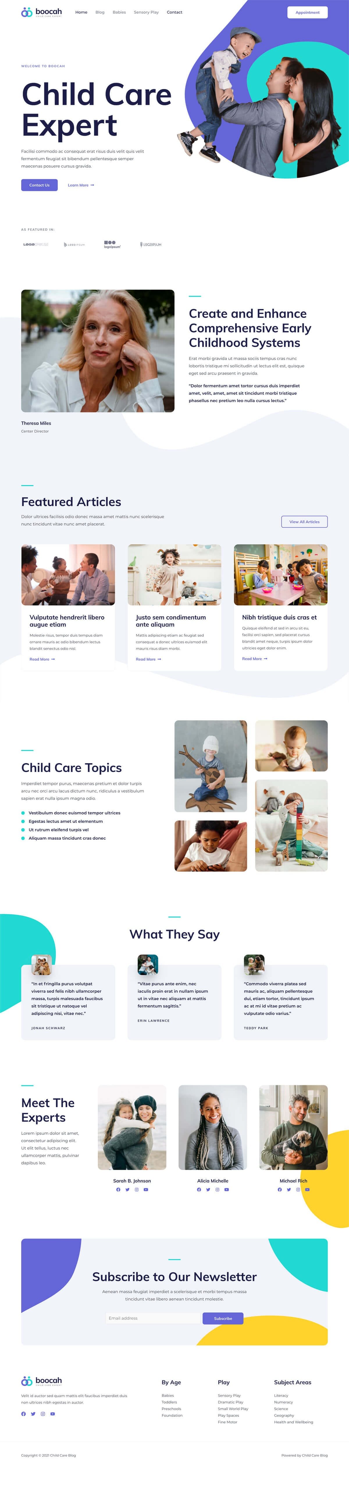 • Professional blog template ideal for childcare or similar niches