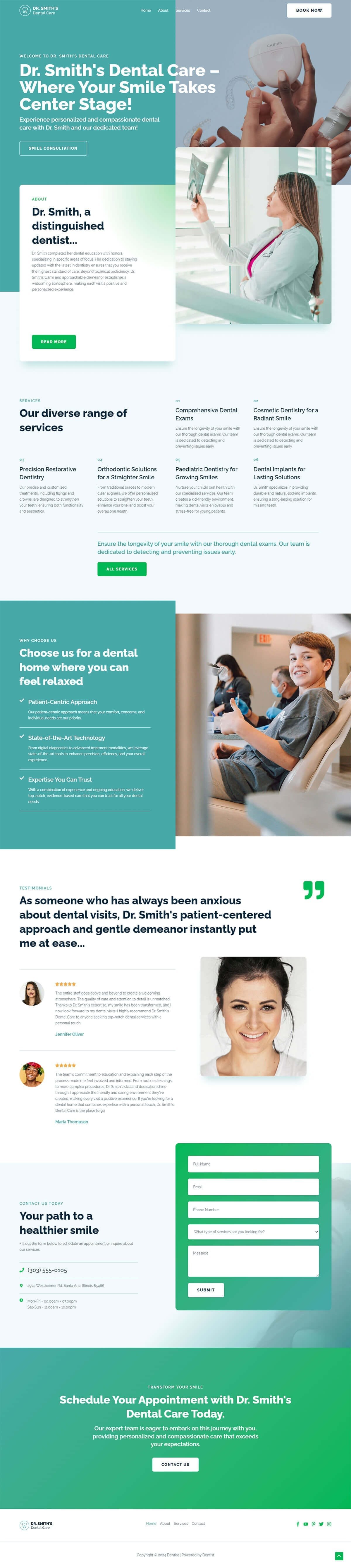 The Dental Care template is a clean, crisp design created to inspire trust and attract new clients. It uses bright colors, a logical layout and creates an engaging customer journey throughout. It’s fast, flexible and could be tweaked for any type of business.