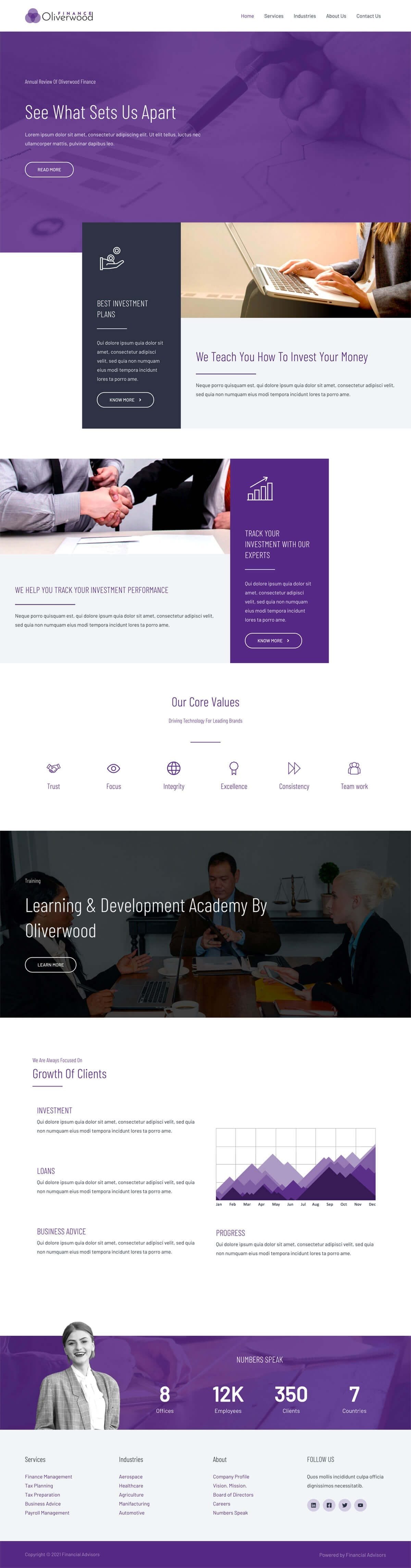 The entire template has been designed with finance in mind. That means balancing the modern with the established to create confidence in visitors. We think this template delivers that and so much more!
