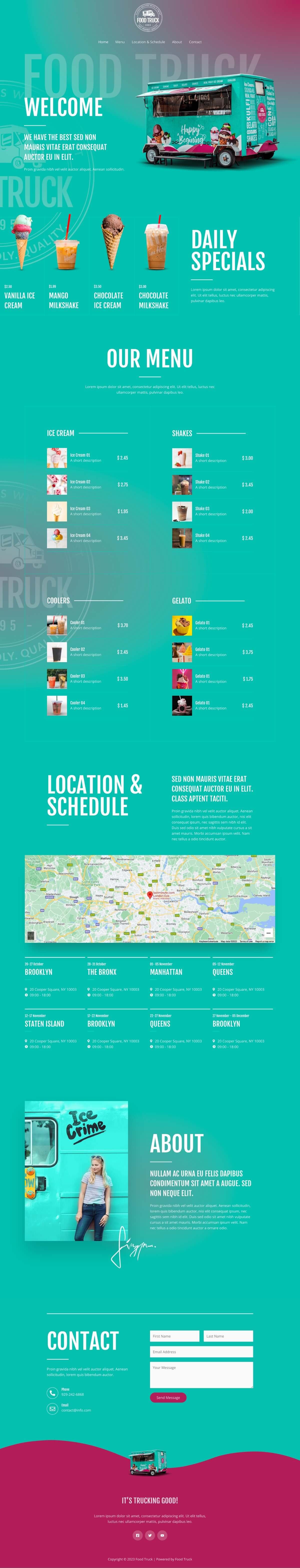 - Colorful template that’s perfect for food trucks and food businesses