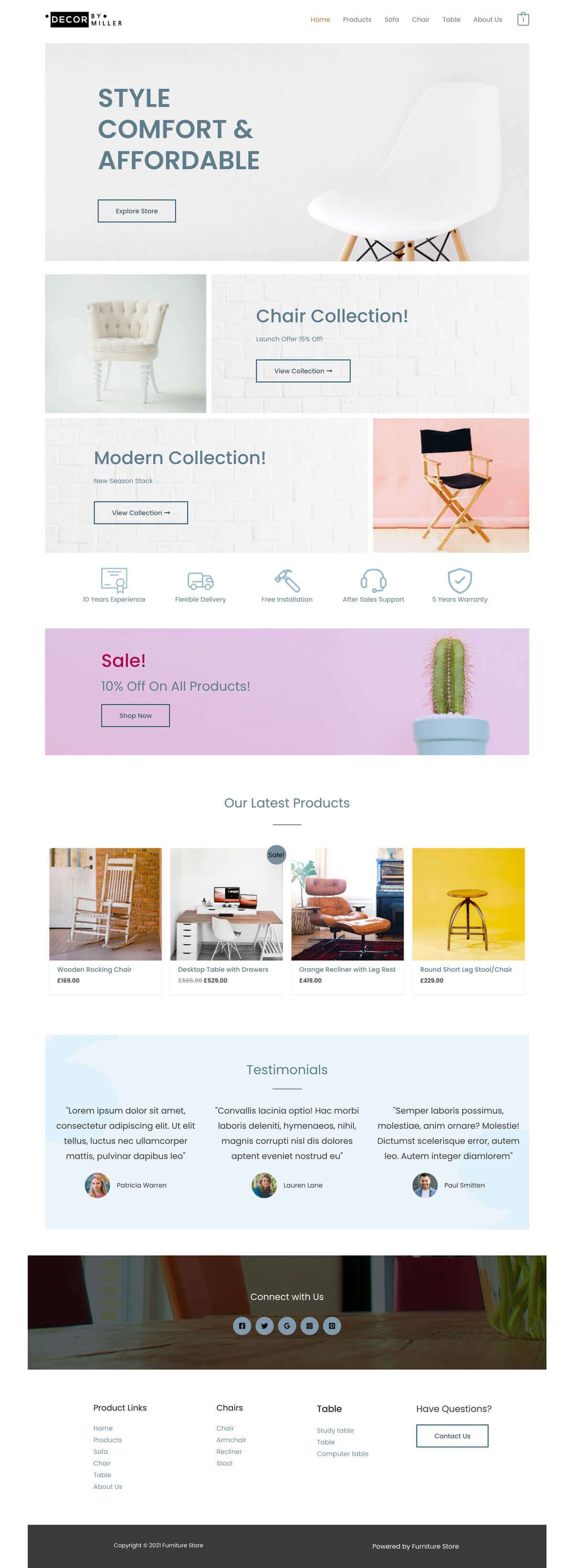 Key features of the Furniture Store template