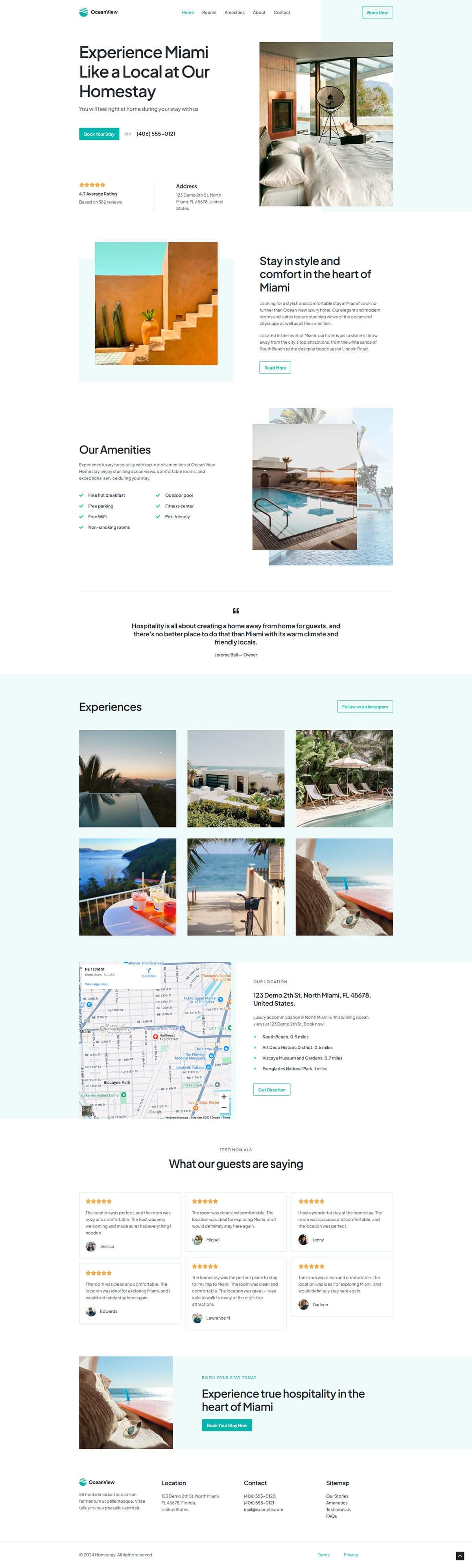 The Homestay template has a relaxed vibe reminiscent of a Caribbean getaway or somewhere tropical. It’s chilled, inviting and delivers exactly the kind of feel that helps convert visitors into guests.
