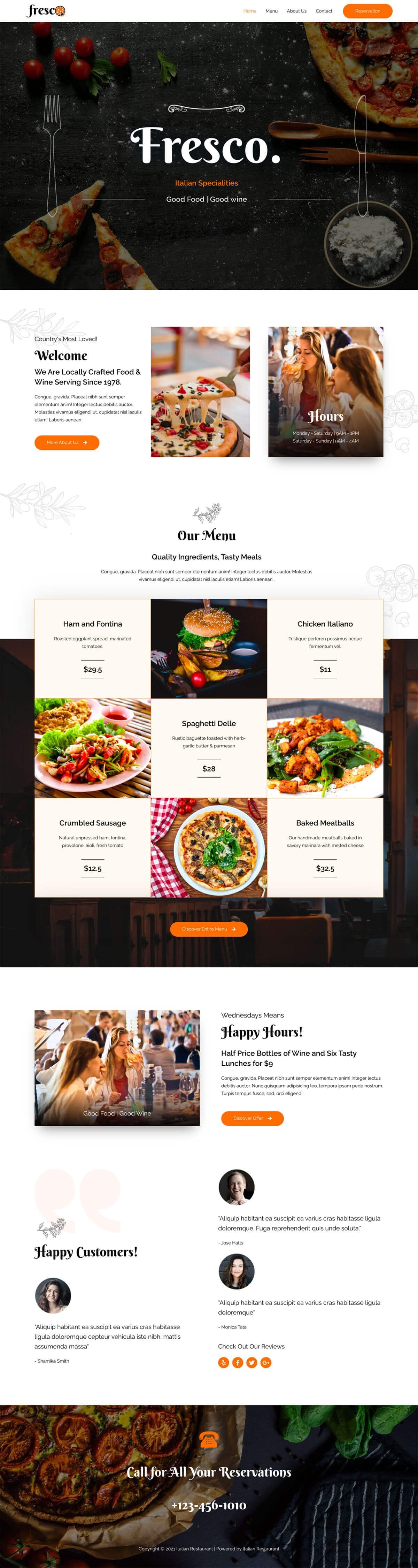 Key features of the Italian Restaurant template