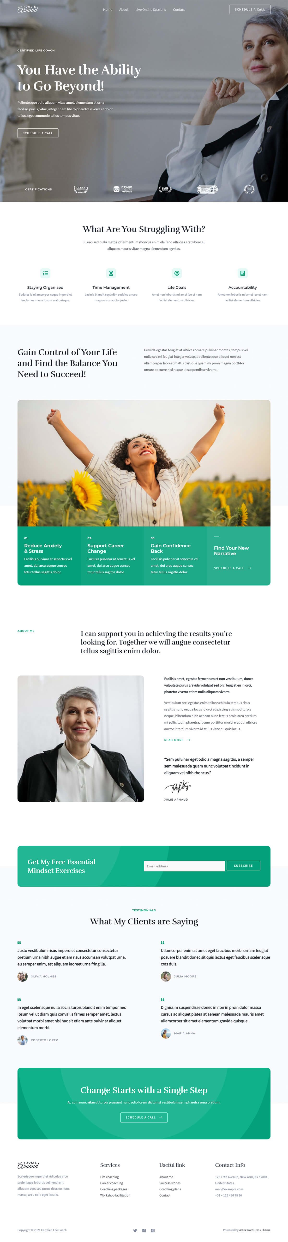 Key features of the Life Coach template