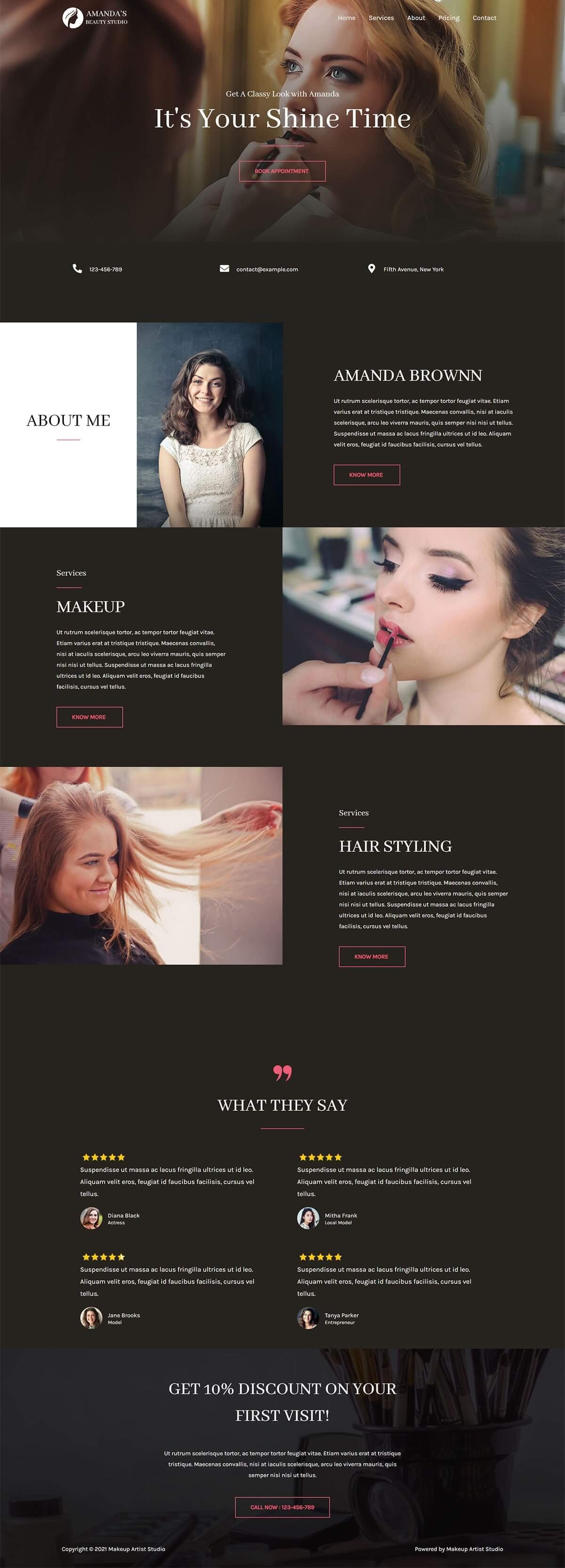 Key features of the Makeup Artist Studio template