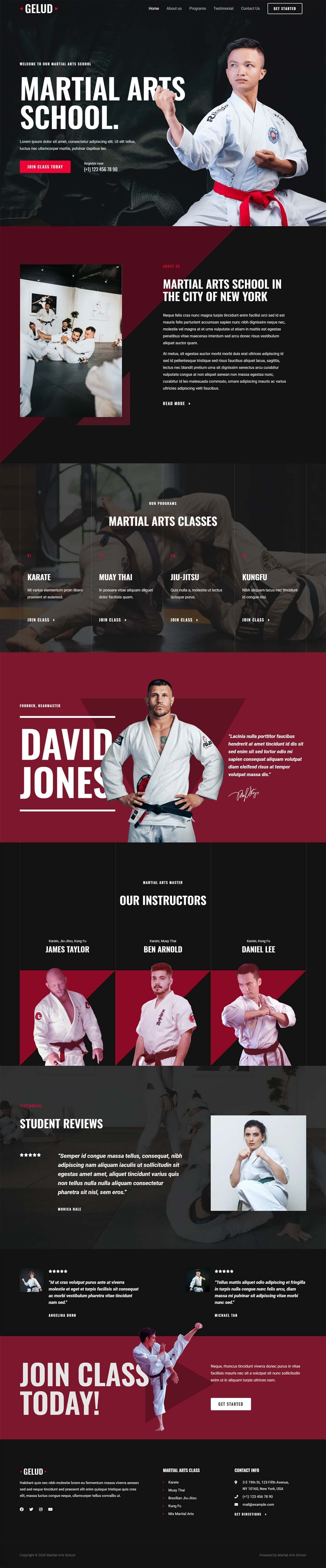 - Creatively designed layout that’s perfect for a martial arts school website