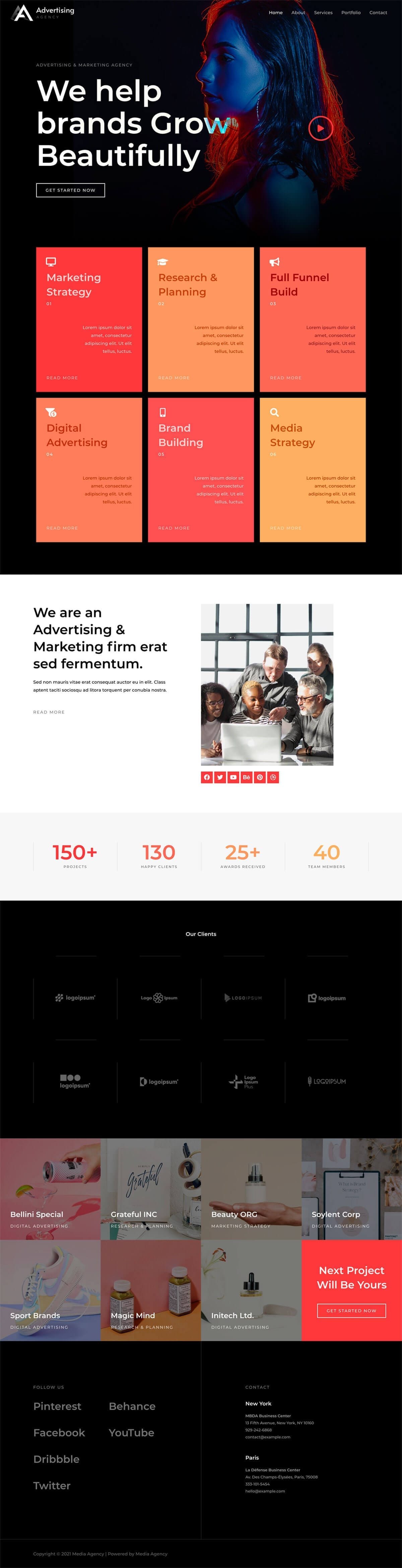 The template includes typical content areas and supplementary pages you would need along with the flexibility to change anything you see on the page using a page builder. It’s an excellent option for any agency!