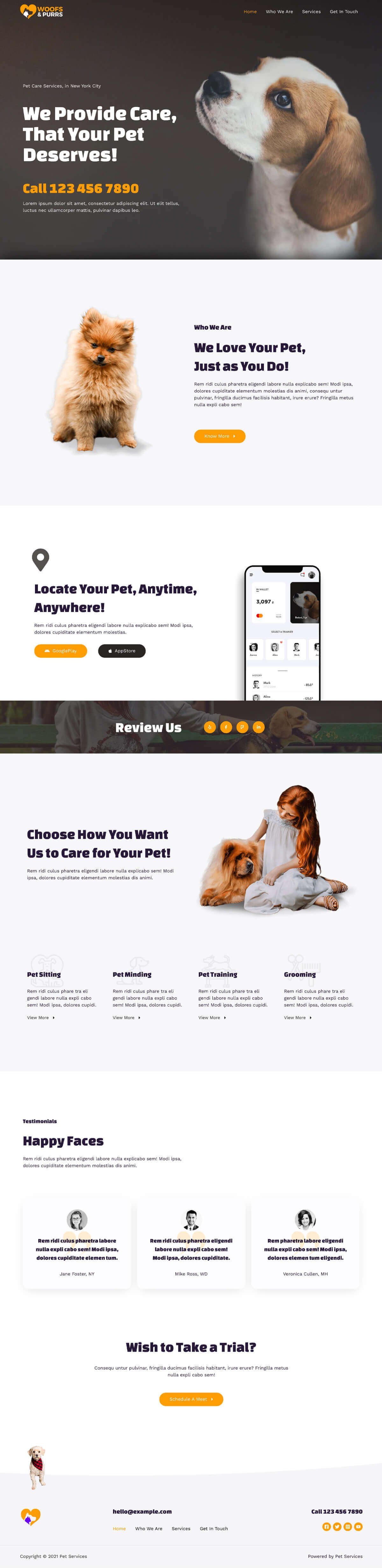Key features of the Pet Services template