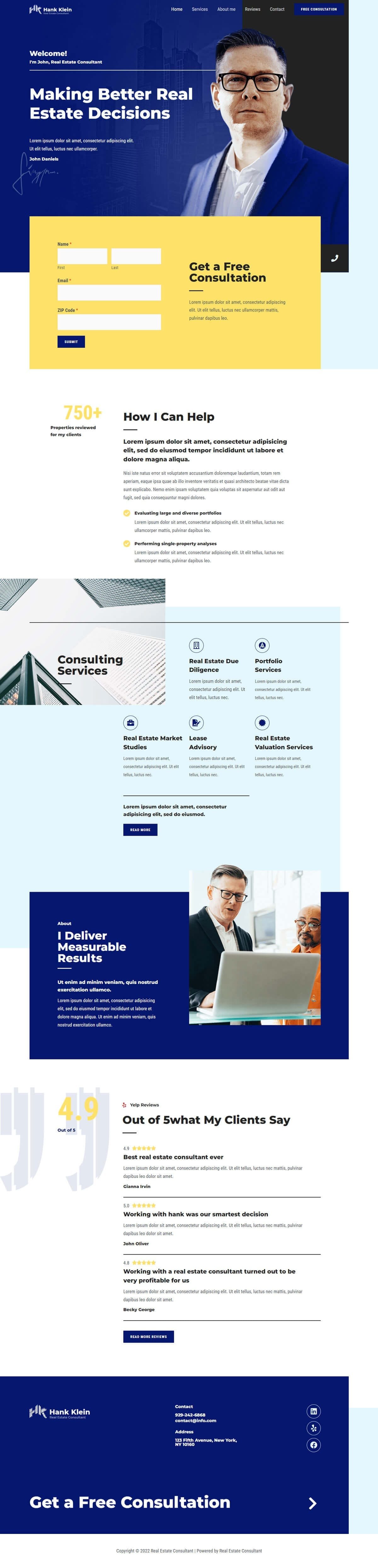 Key features of the Real Estate Consultant template