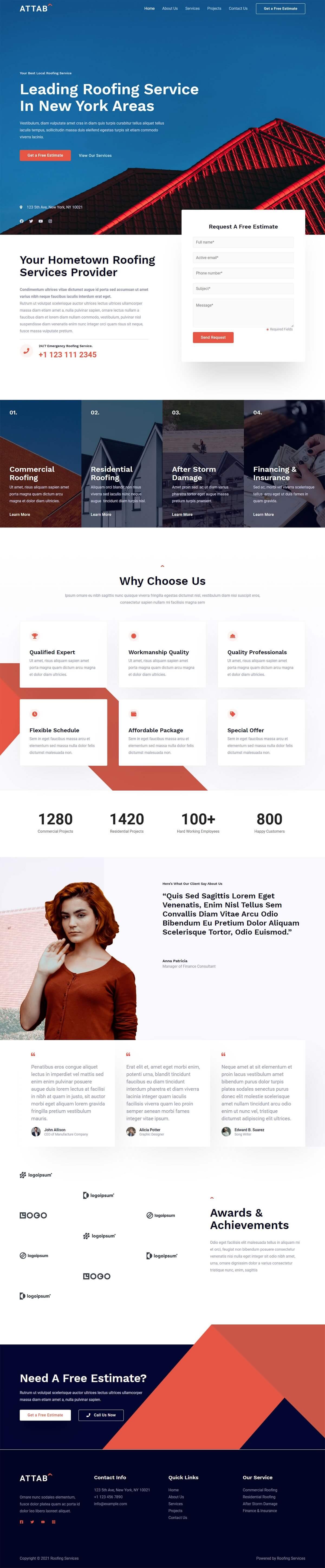 Key features of the Roofing Services template