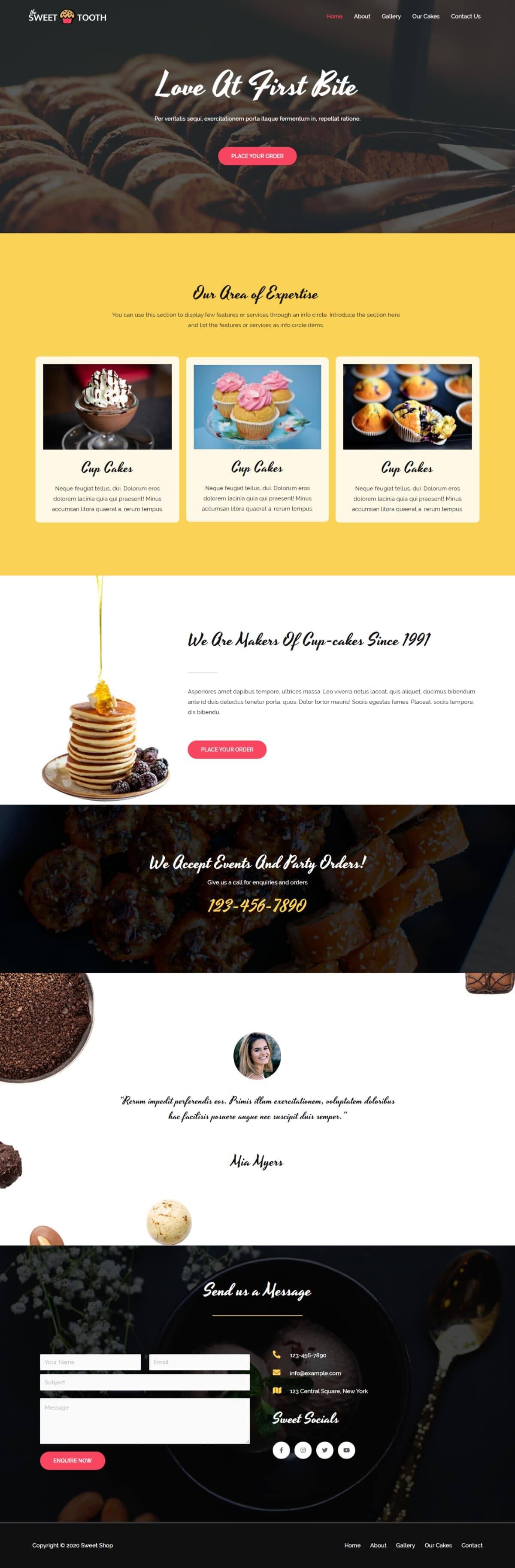 The Sweet Shop website template starts off subtle before opening into bold colors, lovely images and the vibrant atmosphere you would expect from a sweet shop or bakery. It engages from the very moment it loads.