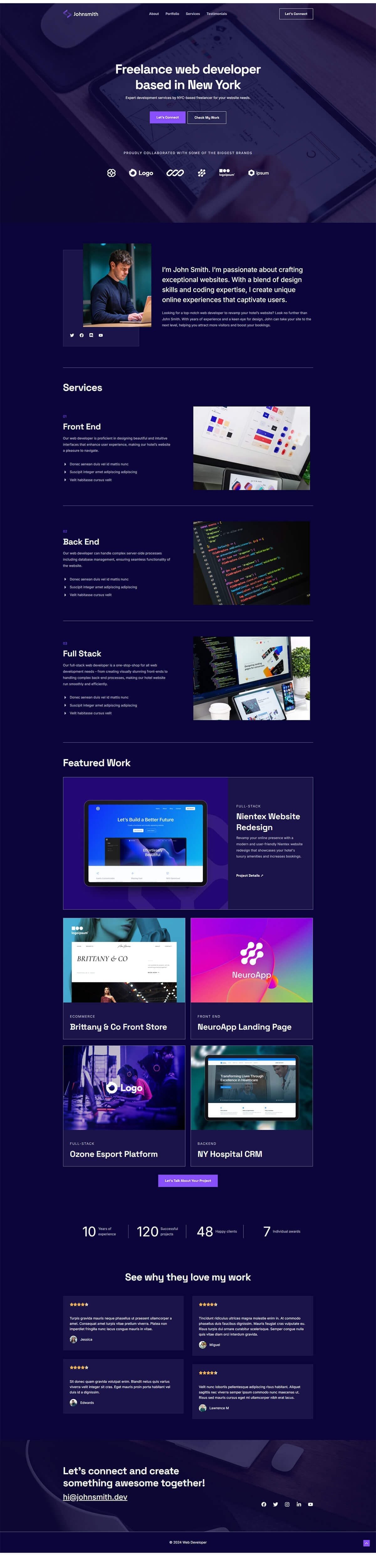 Using the Web Developer portfolio template is your time to shine. It’s faster than building from scratch and delivers the same quality you want to be known for. It’s an attractive design with bold colors, modern typography and lots of interest.